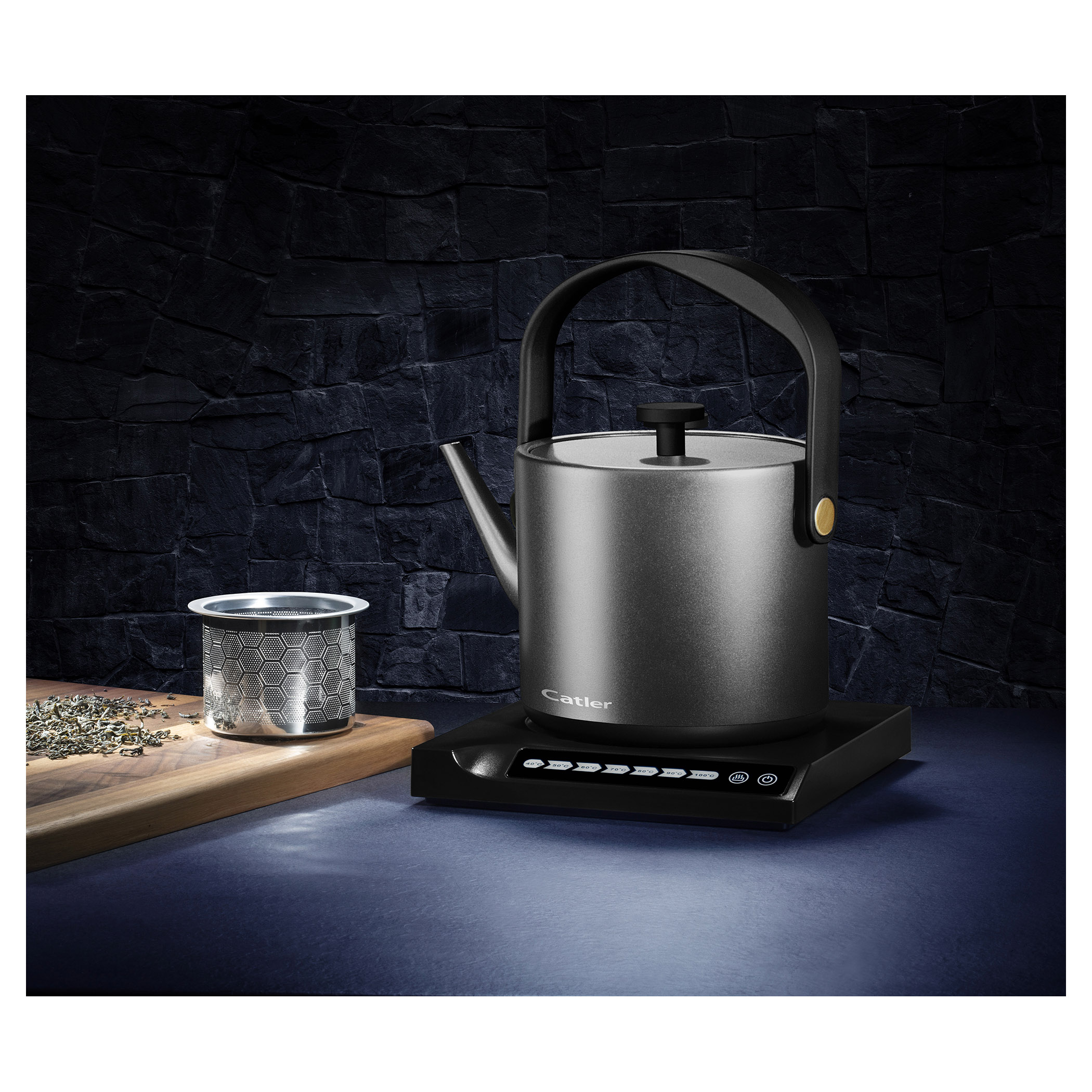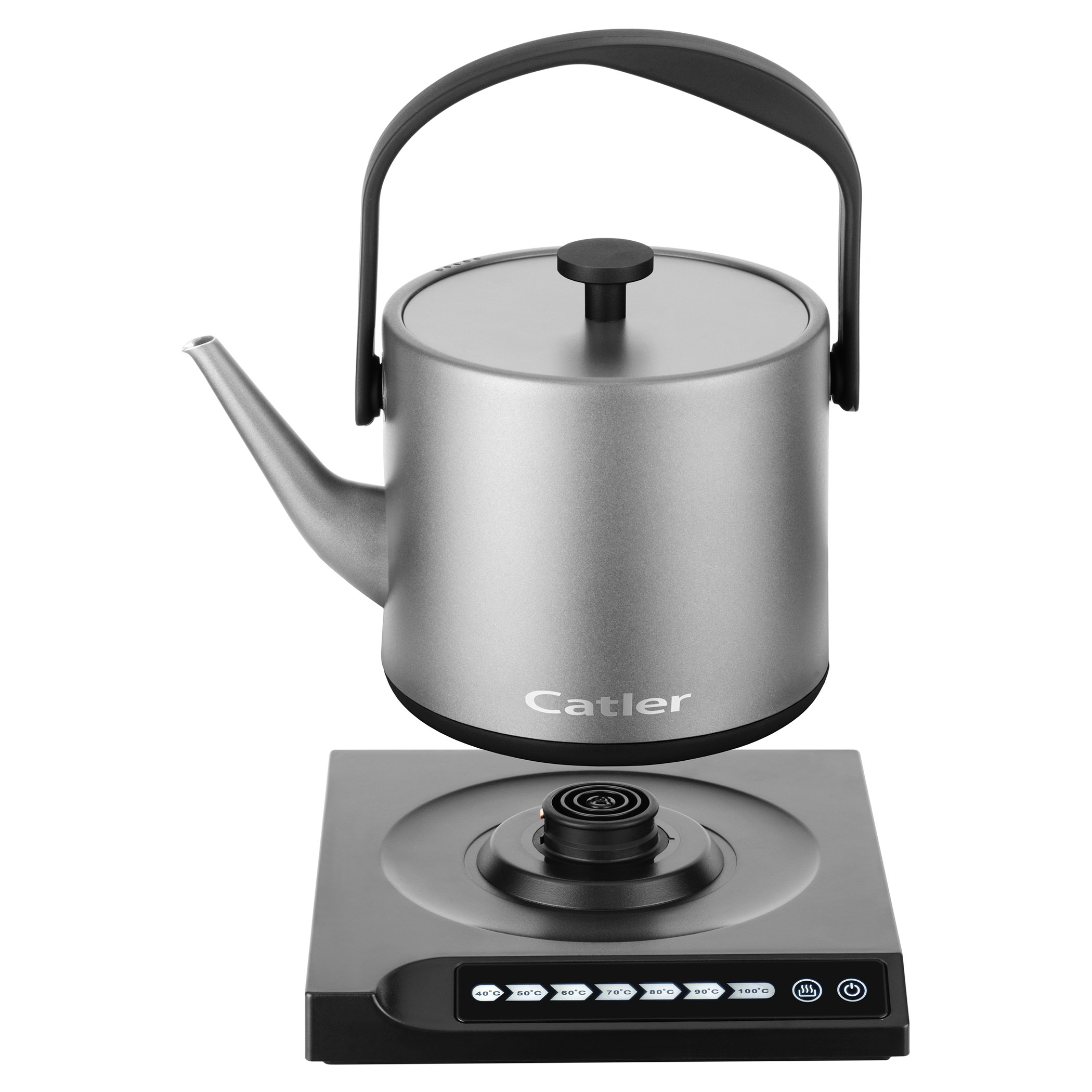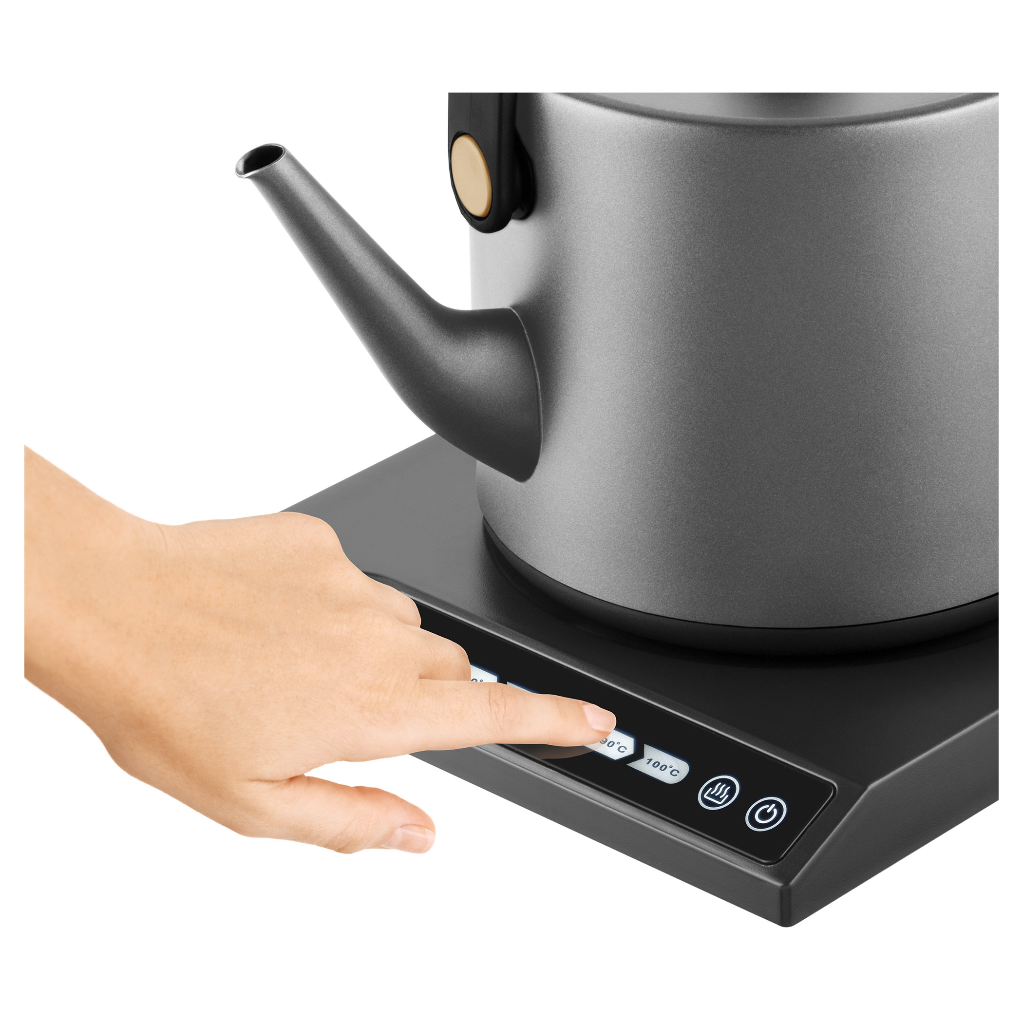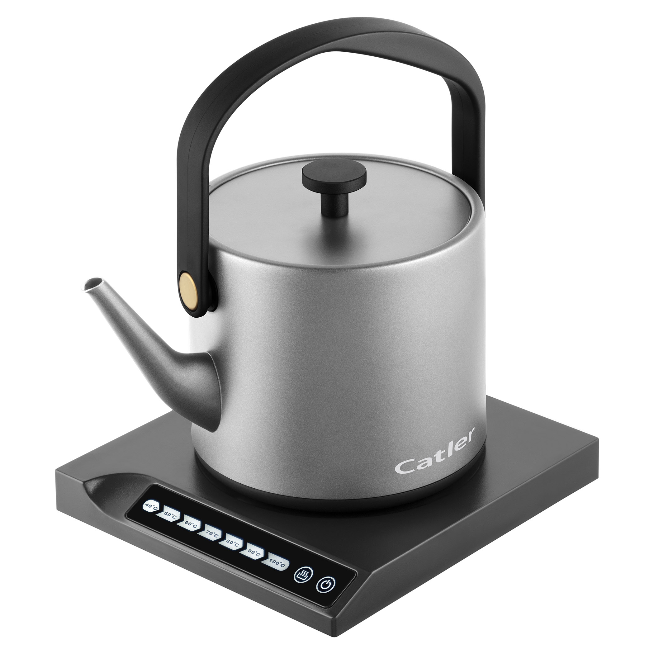 Elektrická varná konvice s regulací teploty a dotykovým ovládacím panelem.