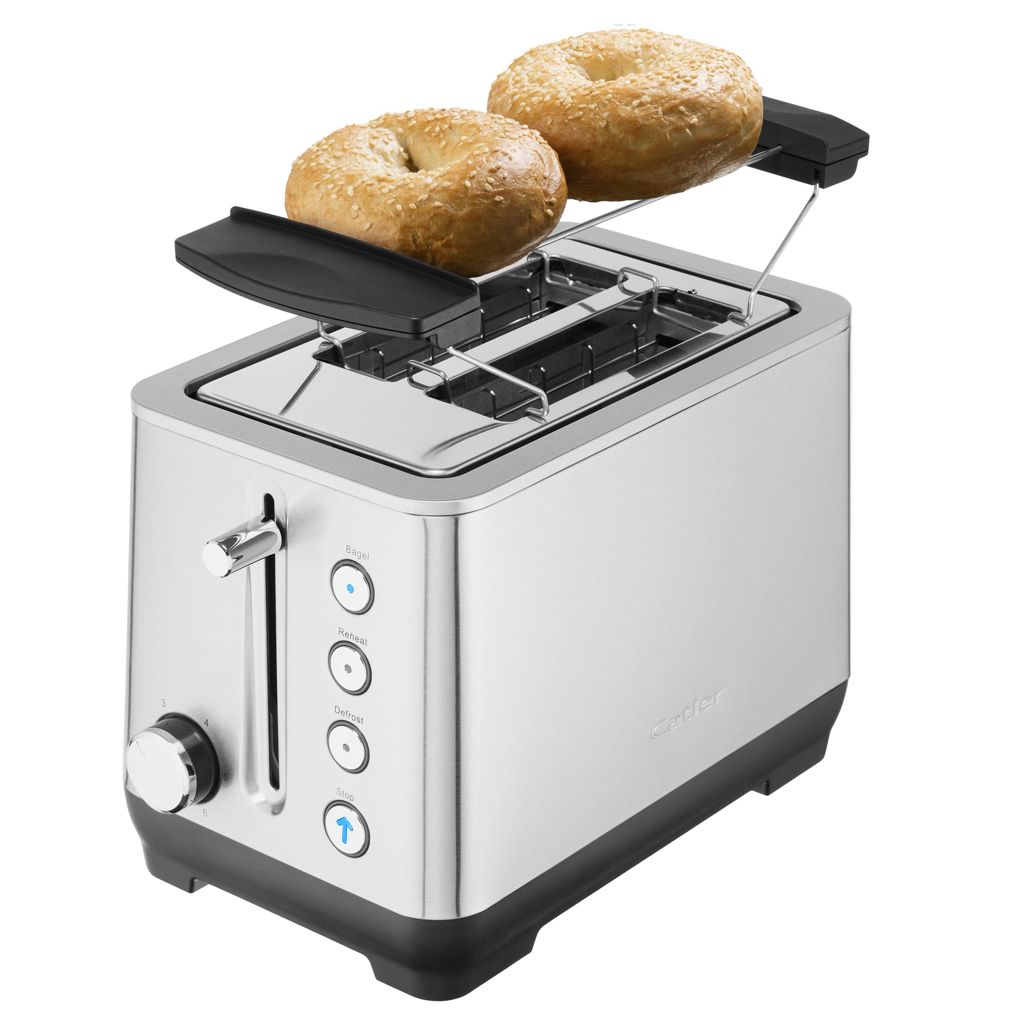 Catler připravil pro všechny milovníky teplých snídaní ideální topinkovač, který za krátkou dobu opeče toast nebo bagel, nebo díky grilovacímu roštu rozpeče bagetu.