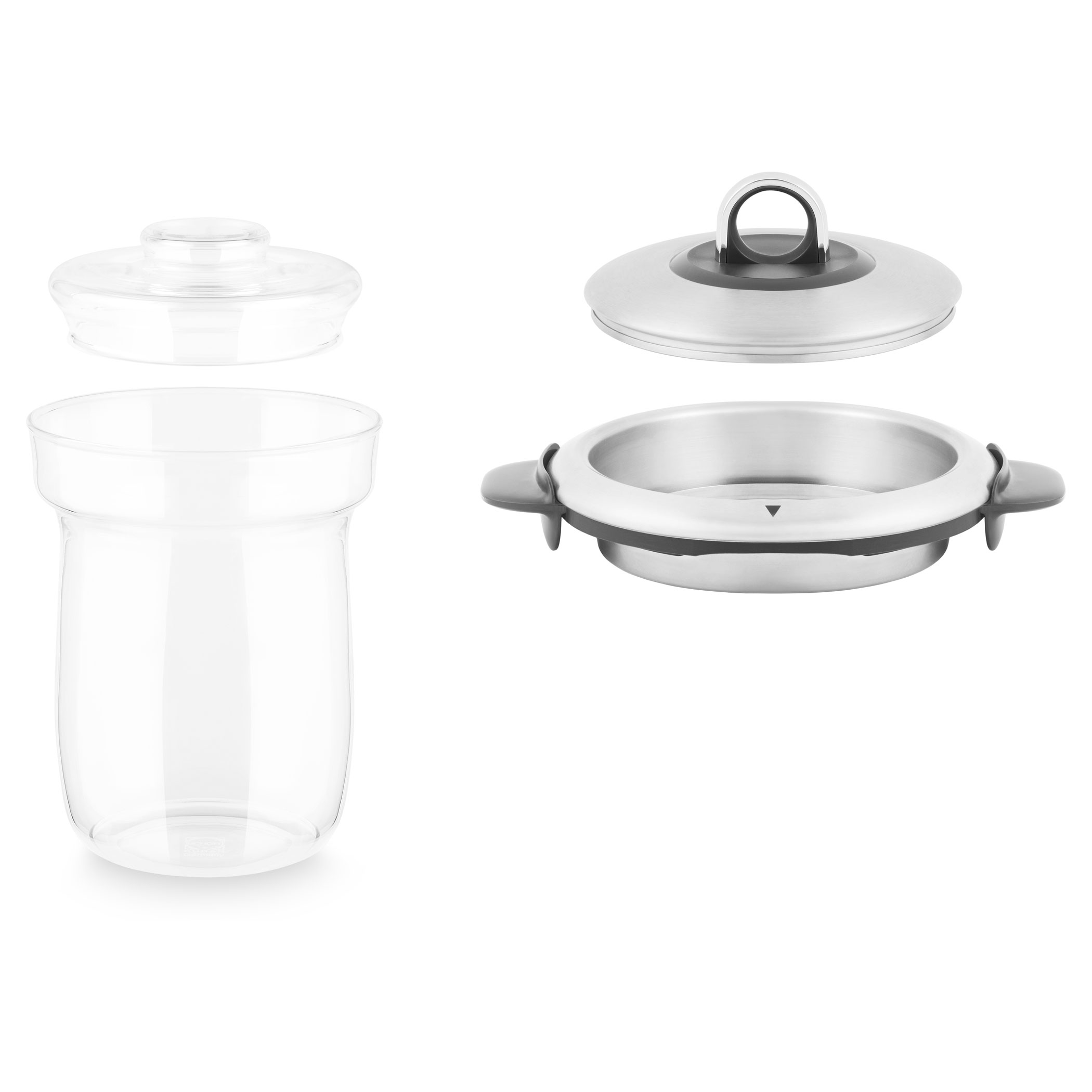 Náhradní varná souprava z kvalitního skla Schott pro znovu ohřátí hotových jídel a přípravu pokrmů ve vodní lázni.